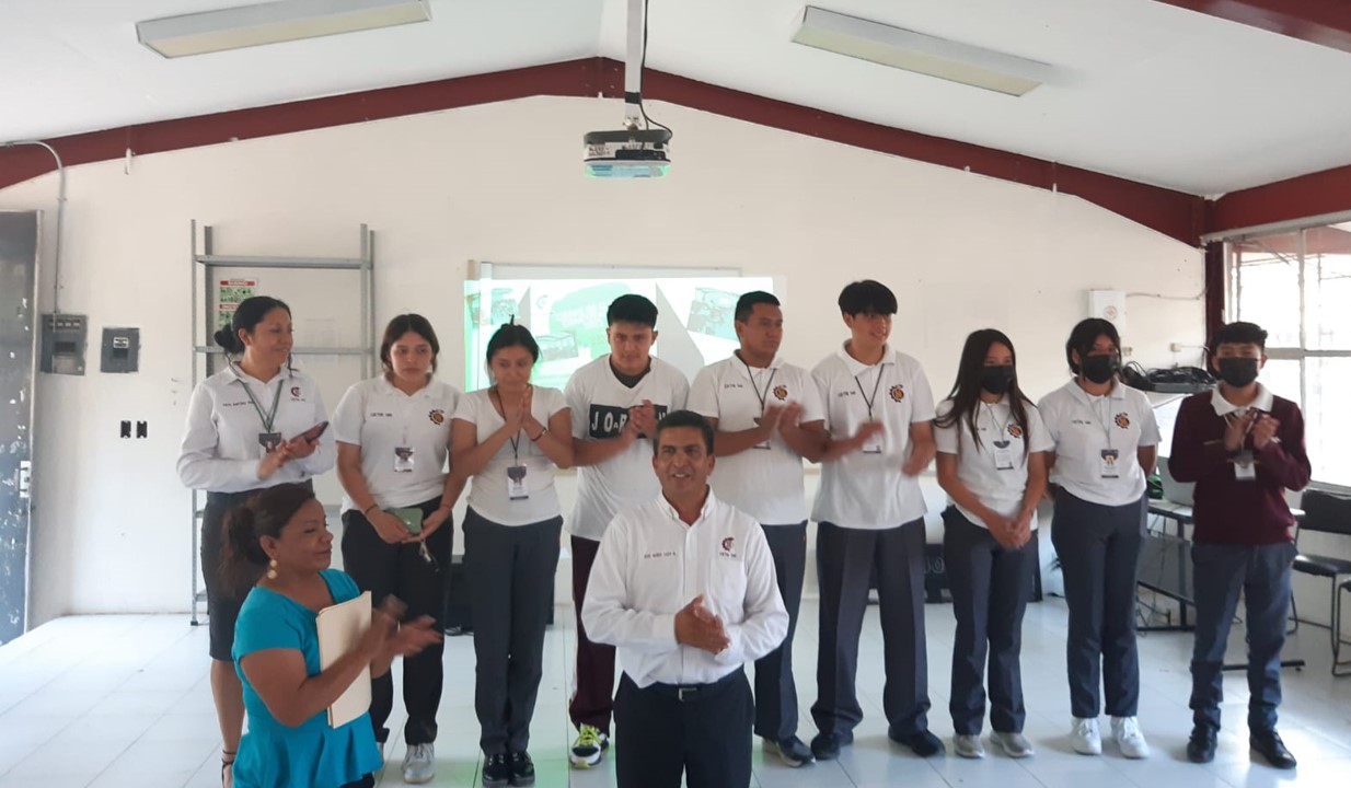 Ceremonia de terminación del curso “Computación básica” para padres de familia y externos, con la intención de capacitar a la sociedad civil y proveerles de habilidades para el trabajo, desarrollado por estudiantes de 6to Semestre de la especialidad de ofimática como muestra de la conexión escuela - comunidad, presidida por el director José Nereo Lugo Moreno, la Lic. Yulma Rojo Méndez, jefa de servicios docentes y la asesora del proyecto Lic Edith Martínez Pérez.