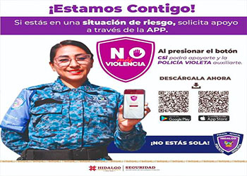 ¡No estás sola!, Escanea el código y descarga la aplicación #NoMásViolencia, conectada al C5i, donde podrás solicitar apoyo y asesoría en caso de encontrarte en una situación de riesgo. Vamos de frente para abatir la violencia de género.